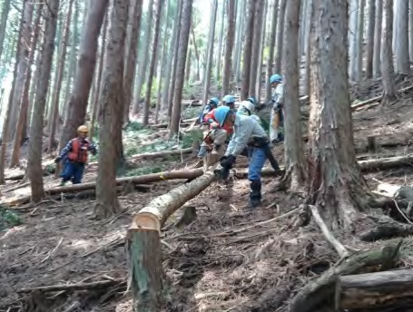 地域社会の一員として、地元地域で実施される道志川の水源を保全する事を目的とした、道志水源林整備ボランティア事業に随時参加しています。