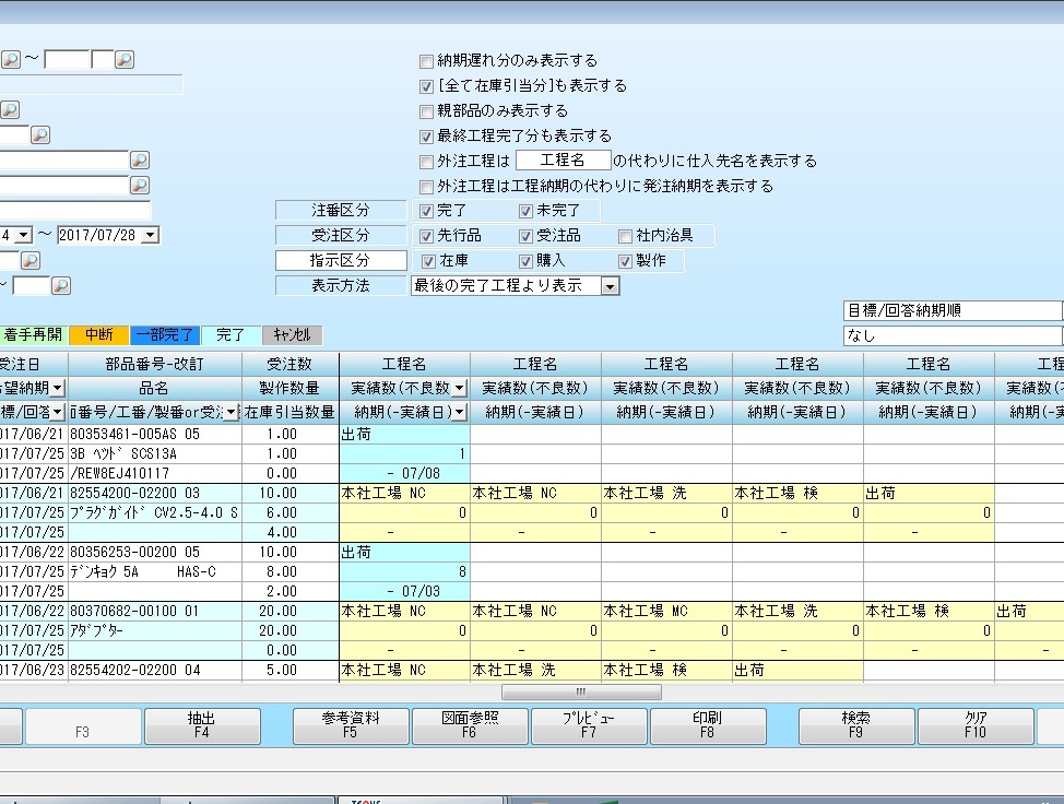弊社は、納期厳守、要求の正確な理解、深い経験と知識、誠実な姿勢をもってお客様のご要望にお応えしてまいります。生産管理システム(テクノア)で、リアルタイムな加工進捗状況の把握や負荷調整を随時に行えるため、正確納期でのお届けが可能です。